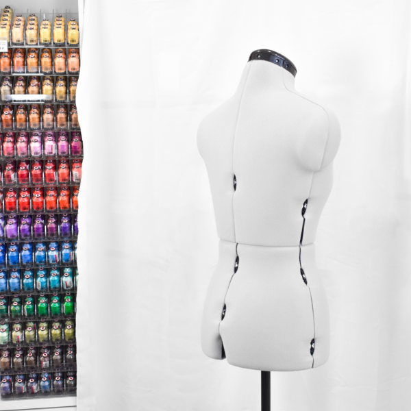 Туловище изделия имеет нейлоновую поверхность, на которой отлично будут видны разметочные меловые линии. Она подходит и для работы методом наколки. Предусмотрены регулировки основных обхватов, а также длины спины. Удобная подставка на роликах для перестановки в мастерской. Плечи манекена позволяют провести примерку рукава.