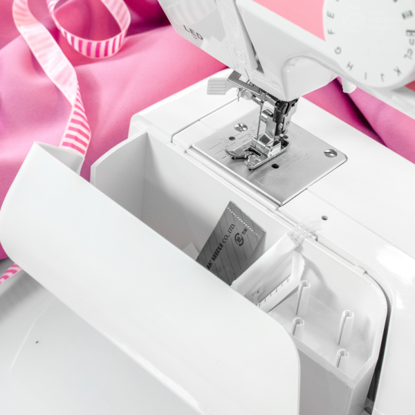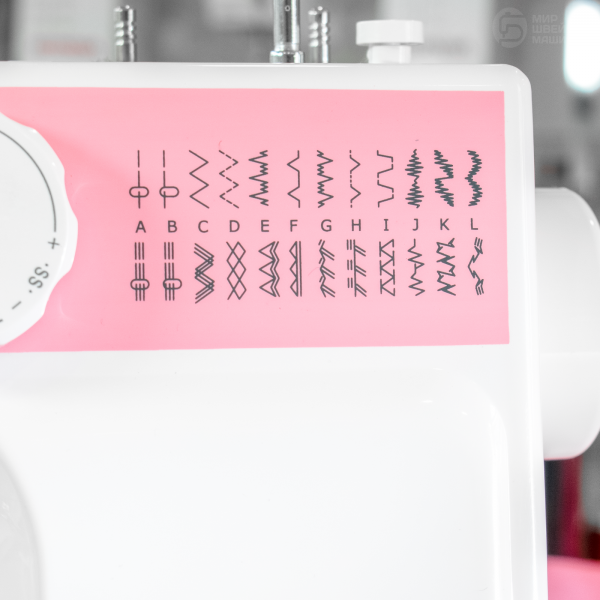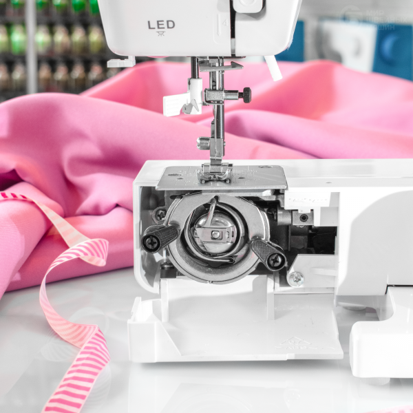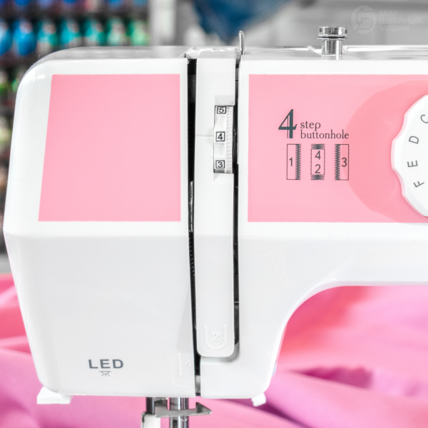 В основе конструкции - надежный вертикальный челнок, а полный обзор рабочей области гарантирует современная светодиодная подсветка. Верхняя нить быстро заправляется с помощью нитевдевателя. Длину стежка можно установить до 4 мм, есть два положения иглы для прямой строчки. В арсенале модели есть трикотажные, оверлочные и декоративные швы, а также полуавтоматическая петля. Предусмотрен рычаг обратного хода и возможность использования рукавной платформы.