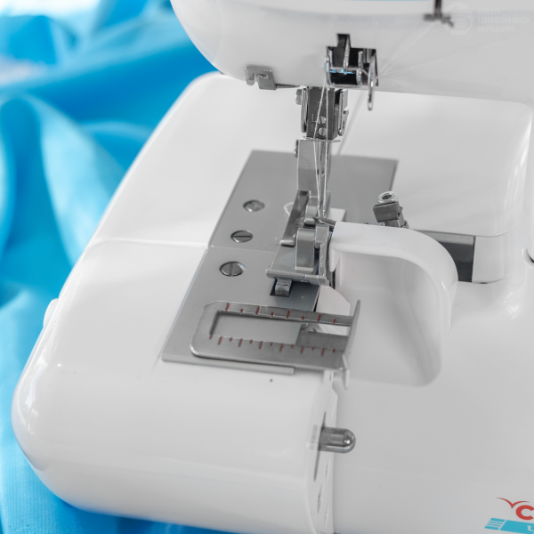 Модель выполняет 12 операций, в том числе ролевой шов и имитацию плоского шва. Силу прижима лапки можно менять вручную. Для трикотажных материалов есть изменение дифференциальной подачи. Предусмотрено отключение ножа. Оверлок оснащен подсветкой и мусоросборником. Скорость шитья может достигать 1300 ст/мин.