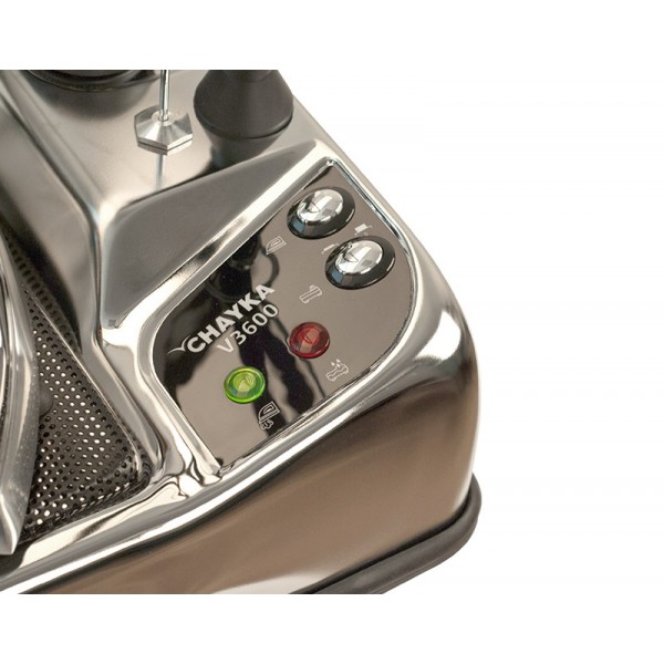 CHAYKA V3600 поставляется с утюгом профессионального класса, который имеет удобную пробковую ручку. Парогенератор имеет возможность вертикального глажения. Подходит для тканей всех типов.