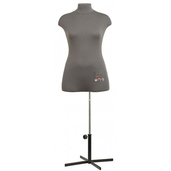 Благодаря мягкости наполнения, манекен устойчив к механическому воздействию. На него можно накалывать детали, проводить утюжку изделия или сжимать. Трикотажный чехол серого цвета содержит в составе лайкру, полиэстер и вискозу.