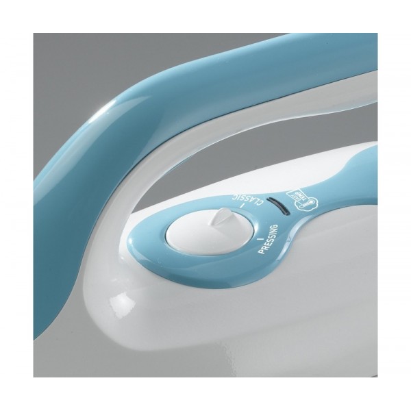 Поставляемый в комплекте утюг имеет подошву из материала Ceranium (сплав алюминия и керамики), который обеспечивает оптимальное скольжение по ткани. Предусмотрено 2 режима нагрева: классический (универсальный, для большинства тканей) и "прессование" (дл сложных, тяжёлых тканей). Для работы можно использовать обычную воду. Есть автоотключение.