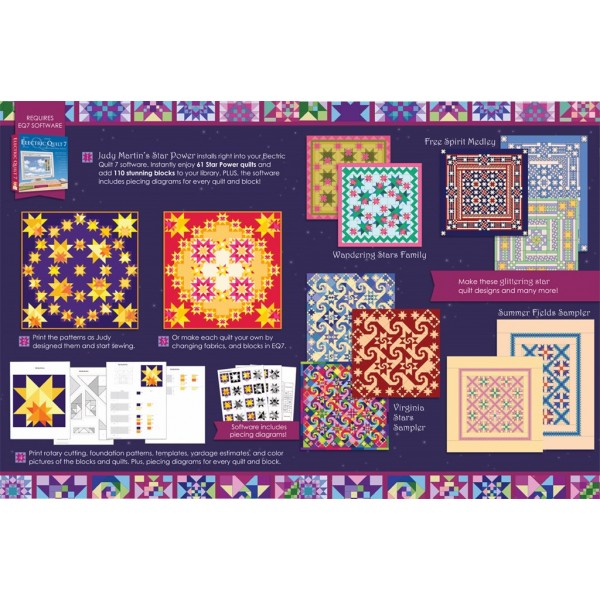 Electric Quilt My Judy Martin's Star Power - набор схем и шаблонов для пэчворка, который содержит 110 блоков и 61 одеяло. Для использования необходима программа EQ7.