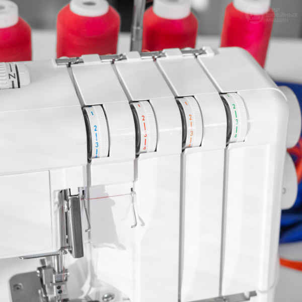 Оверлок обрабатывает различные ткани 3х или 4х ниточными швами, в том числе 3х ниточным ролевым швом. Заправку нитей облегчает цветовая маркировка корпуса. По отзывам покупателей, оверлок отлично справляется с трикотажем, благодаря дифференциальной подаче ткани и настройке давления прижимной лапки. Модель отличается простой управления: Вы сможет легко отключить нож, настроить длину и ширину стежка. Встроенная подсветка гарантирует комфортную работу в любое время.