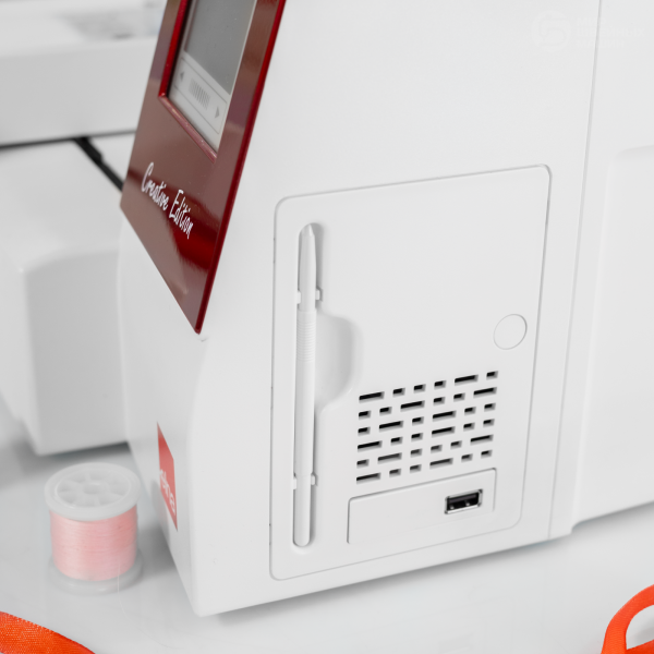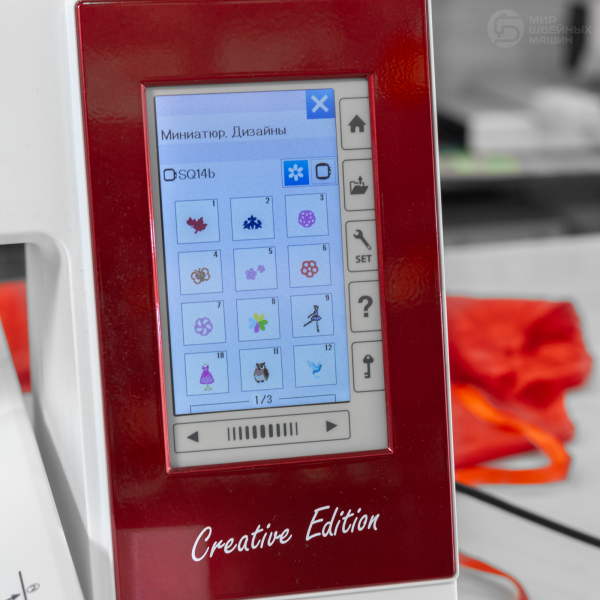 Новая машина оснащена полноцветным сенсорным экраном, на котором с помощью стилуса можно выполнить весь процесс подготовки дизайна к работе. Широкий выбор функций редактирования и комбинирования, есть встроенная память на 4 Мб. Модель предлагает доступ к повторному редактированию, объединению цветов, расположению по углам. Дизайны можно загружать через USB. Вышивка выполняется на скорости 860 ст/мин. Быстро подготовить машину поможет суперзаправщик верхней нити, а благодаря встроенным сенсорам обрыв нитей не застанет мастера врасплох. Большая рабочая поверхность (30,35х12 см) освещается в 3х местах. Есть автообрезка нити.