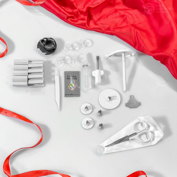 Машина комплектуется пяльцами четырех размеров и набором необходимых для обслуживания инструментов. Используйте качественные нитки для вышивки, которые можно купить в нашем магазине.