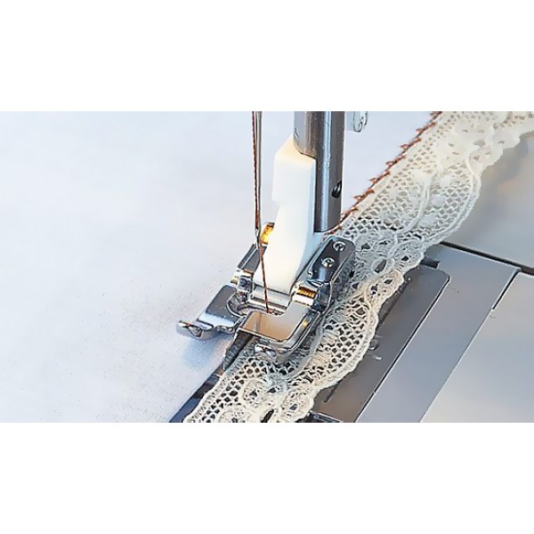 Назначение этой лапки - выполнение отстрочки, притачивание тесьмы или сшивание деталей встык, для чего на подошве установлен специальный направитель.