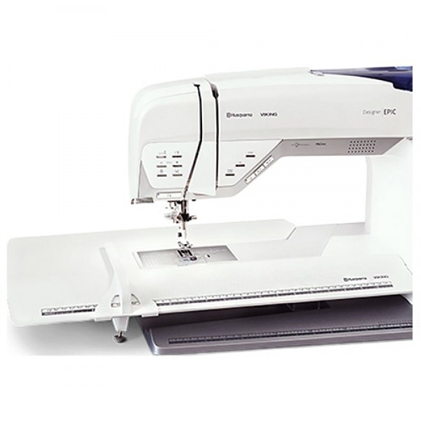 Стол удобно крепится на машину, оставляя под собой свободное место (без ножек). На поверхность нанесена разметка в дюймах и сантиметрах, поэтому всегда можно найти ориентир для выполнения строчки на нужном расстоянии.