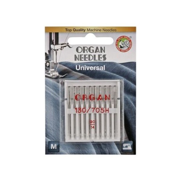 Современная упаковка с десятью иглами для плотных тканей. Универсальная форма острия и стержня. Пластиковая коробочка подойдёт для последующего хранения.