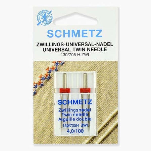 Универсальные двойные иглы для плотных тканей. Расстояние между строчками 4 мм. В упаковке две штуки.