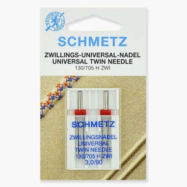 Две двойные иглы для обработки плотных тканей. Ширина между выполненными строчками составит 3 миллиметра.