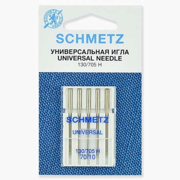Для многих тонких тканей подойдёт эта универсальная игла. Упаковка содержит пять игл размера 70 (10).