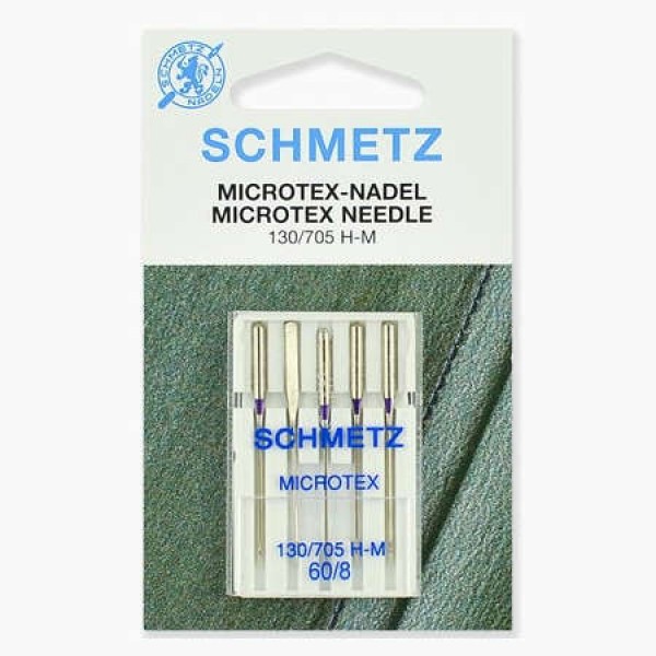 Тонкие иглы с очень острым кончиком специально разработаны для материалов с плотным переплетением нитей. Пять штук.