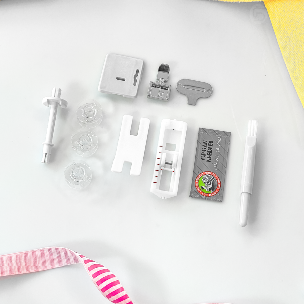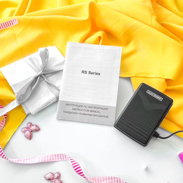 В поставку входит мягкий чехол и основные лапки, в том числе лапка-приспособление для пошива трудных участков.