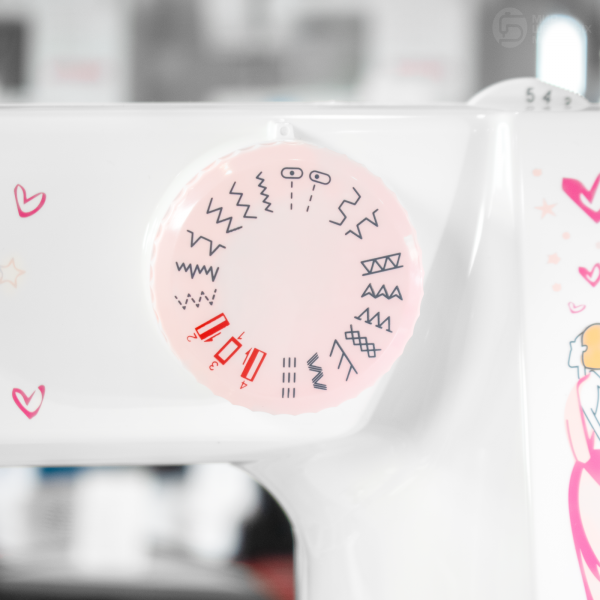 Модель оснащена набором из 21 операции, включая петлю-полуавтомат. Длину стежка можно менять вручную. Мастер может использовать регулировку силы давления лапки для получения оптимального качества пошива тканей разной плотности. Машина оборудована нитевдевателем, имеет рукавную платформу и светодиодную подсветку. На корпусе расположен рычаг обратного хода (реверс).