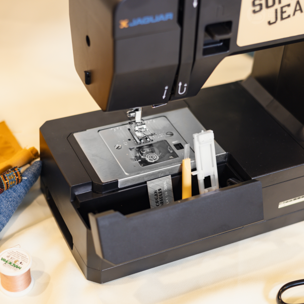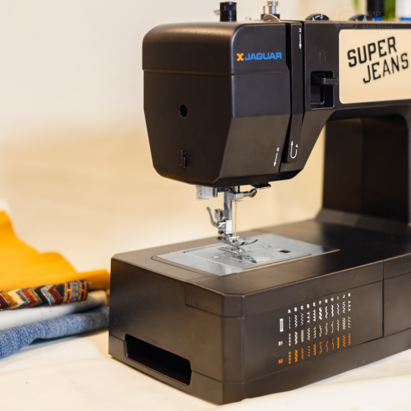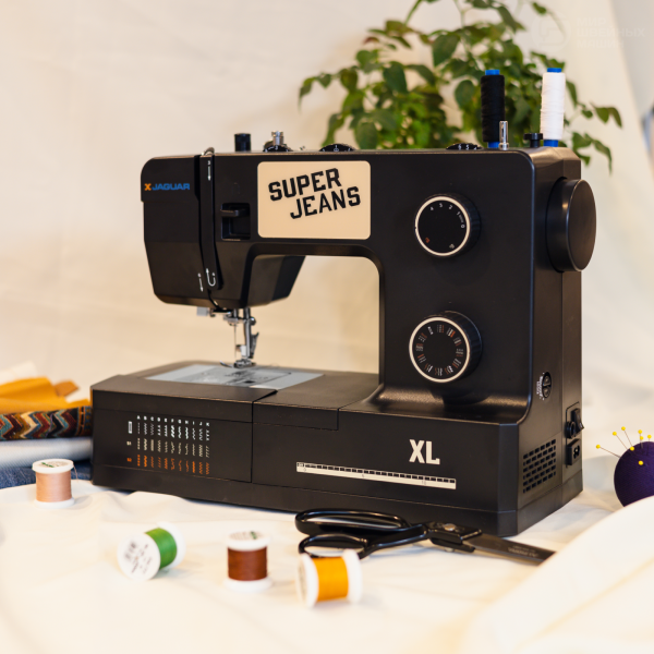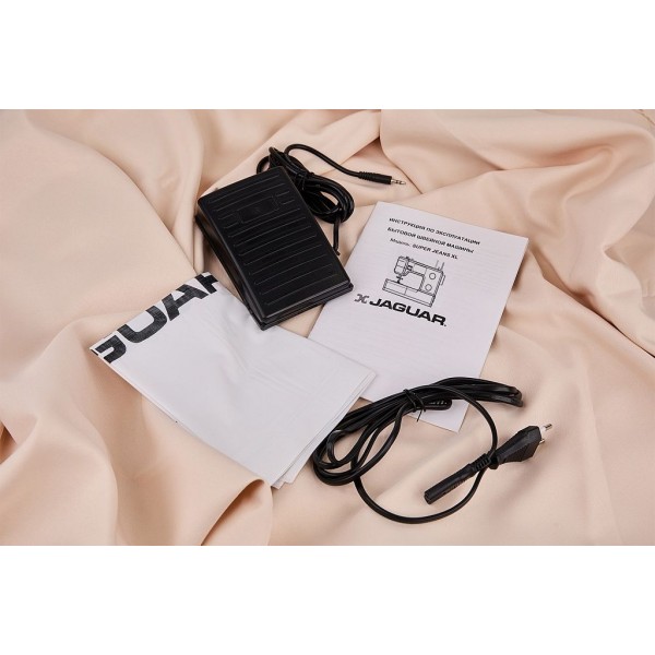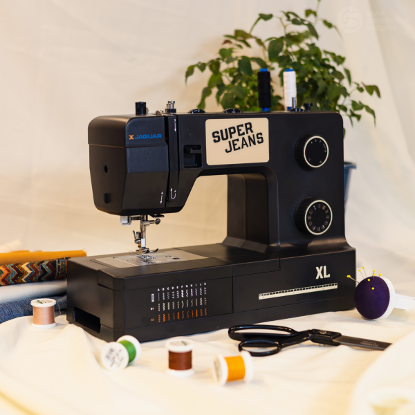 Jaguar SUPER JEANS XL - швейная машина в оригинальном черном корпусе, чья конструкция рассчитана на пошив из тканей разной плотности, включая джинс. Модель выполнена с горизонтальным челноком и предоставляет оптимальный набор строчек для шитья.