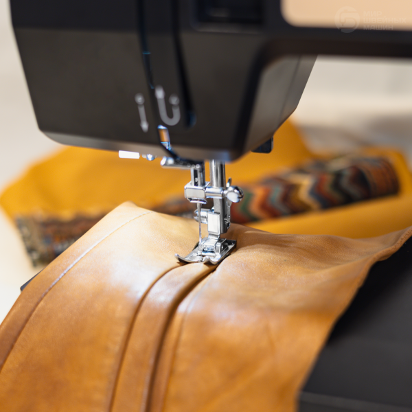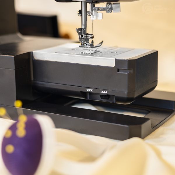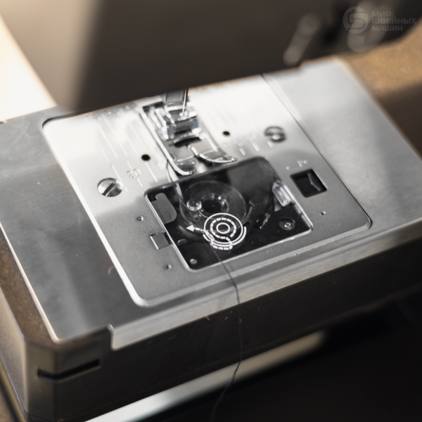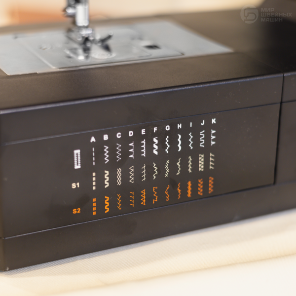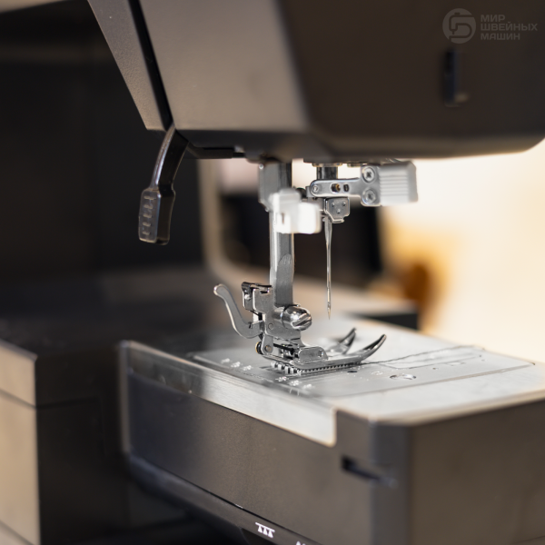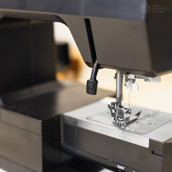 Таблица стежков вынесена на основание корпуса. Мастеру доступны все виды швов, включая оверлочные и декоративные (ширина до 6 мм), а также автоматический режим обработки прорезной петли специальной лапкой (в комплекте). Чтобы справляться с джинсом в несколько сложений, машина оборудована настройкой давления лапки и 7-сегментным нижним транспортером, а также мощным двигателем на 100Вт и усиленной металлической станиной. Скорость работы до 800 ст/мин. Есть переключатель для блокировки нижней рейки во время стежки или штопки. Установлен нитевдеватель и яркая подсветка рабочей области.