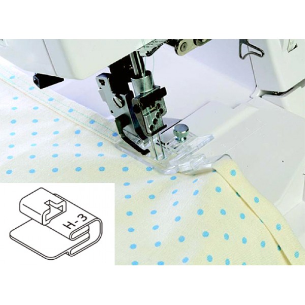 Направитель устанавливается на коверлок для работы с лапкой М 200-801-304, чтобы выполнить обработку края.