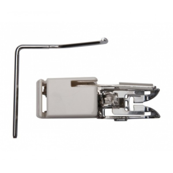 Верхний транспортёр с направителем для работы со сложными тканями, многослойными проектами, кожей, трикотажем, винилом и т.д. Одновременное продвижение материала сверху и снизу обеспечивает качество строчки.