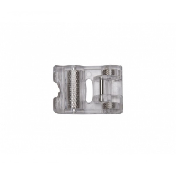 Лапка оборудована роликами и легко проходит различные утолщения на материале. Предназначена для работы с плотными тканями, винилом и кожей.