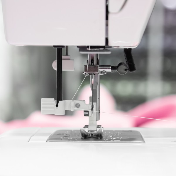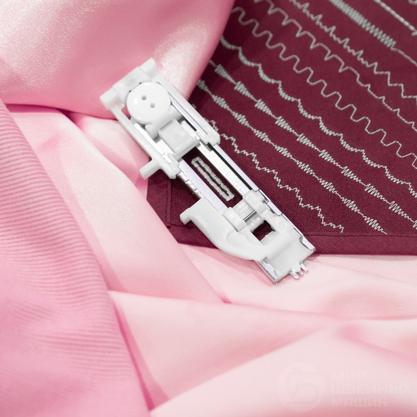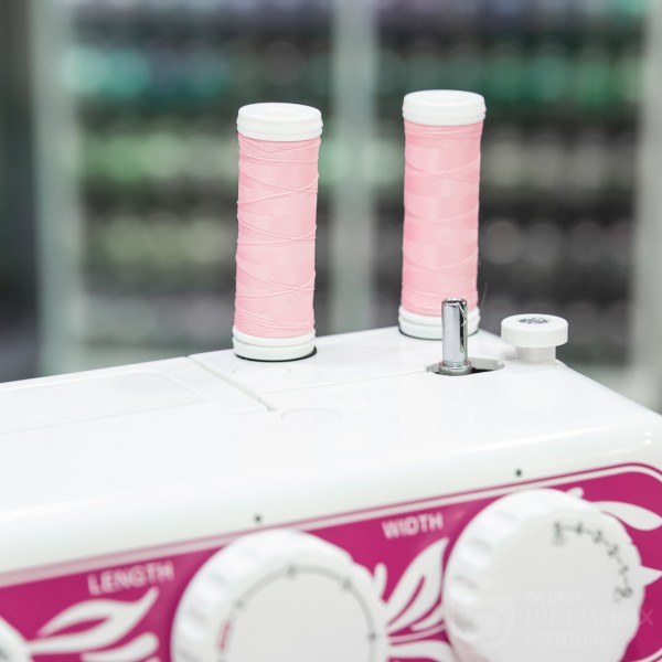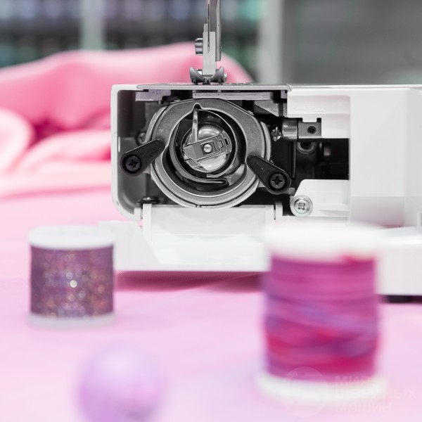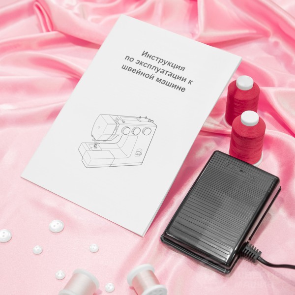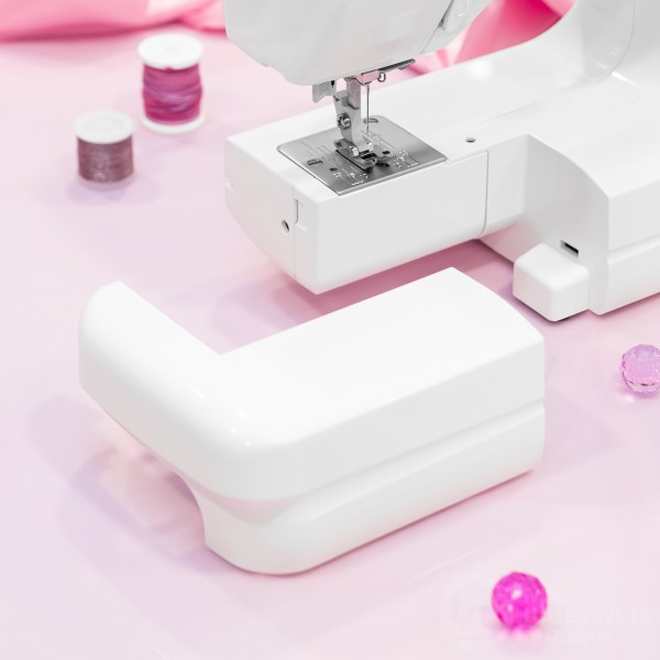 В основе конструкции надежный вертикальный челнок и механический выбор операций. Есть плавная настройка параметров 24х операций, а также автоматическая прорезная петля. Установлен простой нитевдеватель, есть яркая подсветка и узкая рукавная платформа. При необходимости блокировки передвижения материала под лапкой (штопка, стежка и др.) используется штопальная пластина (в комплекте).