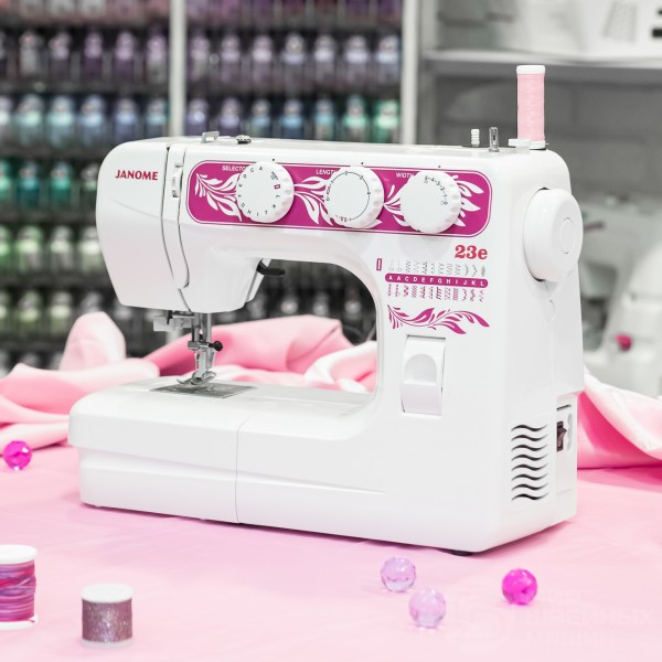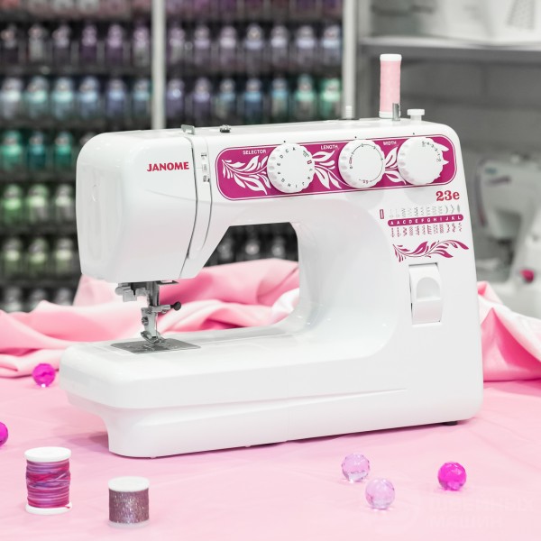 Janome 23e – электромеханическая модель с оптимальными возможностями для домашнего шитья. Машина от проверенного бренда с простым управлением и привлекательной ценой.