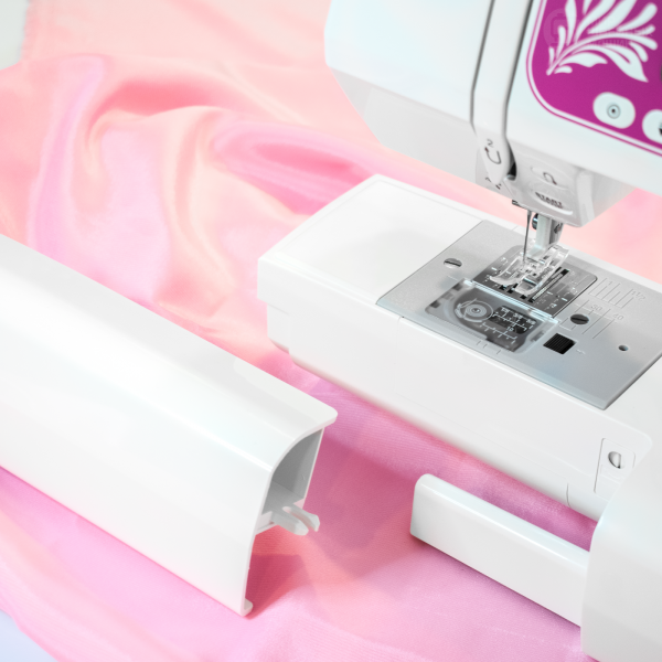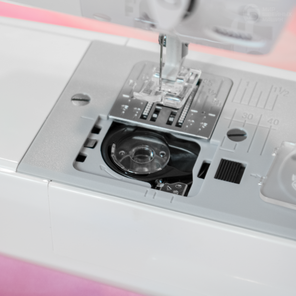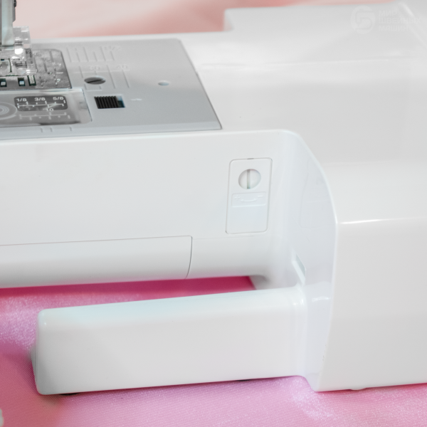 Машина с горизонтальным челноком оснащена нитевдевателем и ЖК-монитором. Все 50 операций перечислены на лицевой панели корпуса вместе с типом используемой для неё лапки. Предусмотрено 3 варианта обработки автоматической петли. Кнопочная панель управления включает шитьё без педали, автозакрепку и позиционирование иглы, а отдельный регулятор отвечает за ограничение скорости шитья. Широкий нижний транспортёр из 7 частей отключается переключателем, чтобы выполнить стёжку или штопку. Модель имеет встроенное светодиодное освещение и рукавную платформу.