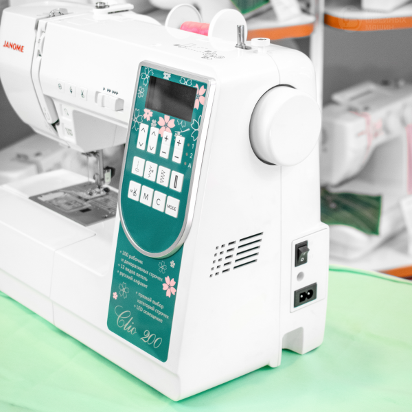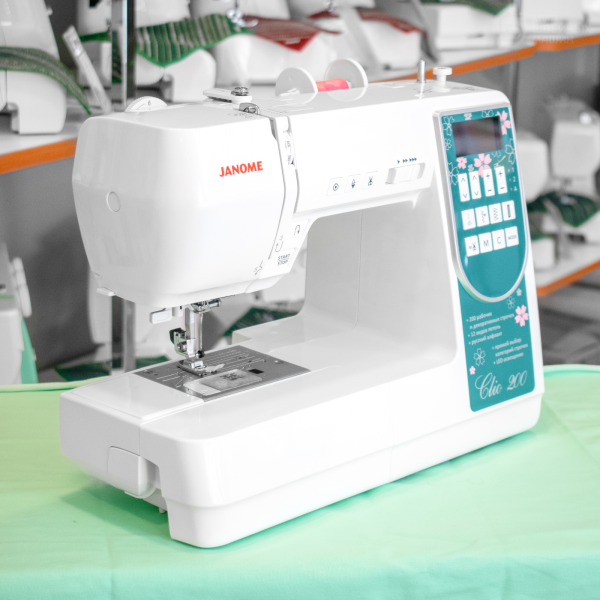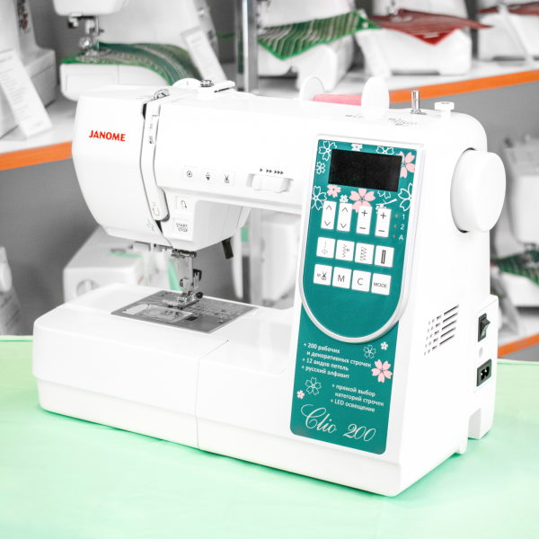 Janome Clio 200 – модель с компьютерным управлением и горизонтальным челноком. Возможности машины позволяют взяться за проект любой сложности, а продуманный дизайн и разумная цена являются её дополнительными плюсами.