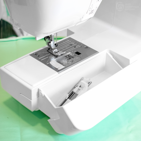 Триста швейных операций предоставляют неограниченный простор для дизайна Ваших моделей. Двенадцать видов автоматической петли, алфавит и специальные строчки для квилтинга, а также нитевдеватель и регулировку давления лапки отмечают в своих отзывах большинство пользователей. Яркий дисплей и кнопки прямого выбора расположены на лицевой панели, там же Вы найдёте регулятор скорости, кнопки позиционирования иглы, автообрезки нитей и автозакрепки. Модель оснащена памятью, регулятором баланса строчки и усиленным проколом иглы.