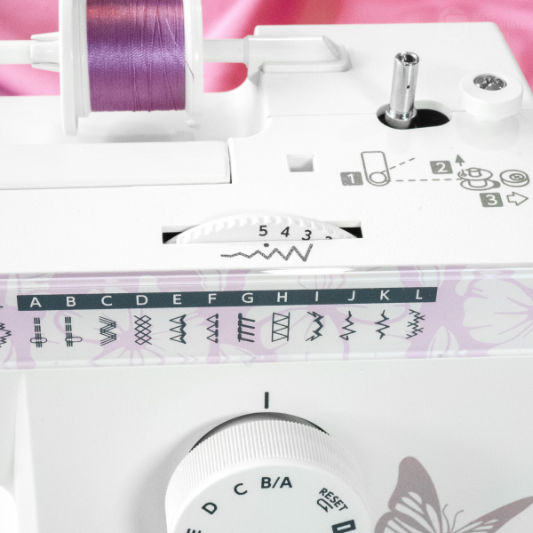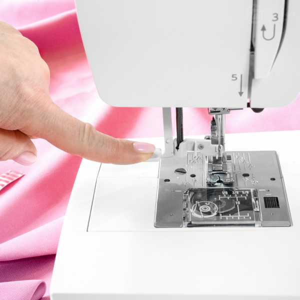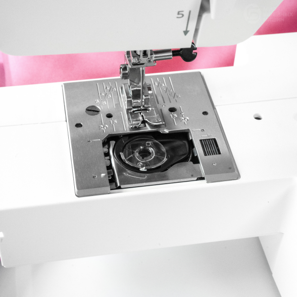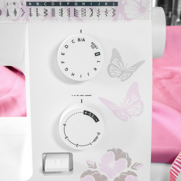 Простая заправка шпульки горизонтального челнока будет легко выполнена даже начинающим, а нитевдеватель поможет справиться с верхней нитью. Машина выполняет обработку края прорезной петли за одну операцию (автомат), а для пришивания пуговиц или штопки предусмотрена быстрая блокировка нижнего транспортёра. Регулировка длины стежка выполняется переключателем на корпусе, где также расположен рычаг реверса. Модель поддерживает шитьё двойной иглой и позволяет настроить силу давления прижимной лапки. В комплект поставки включена оверлочная лапка и направитель для ткани.