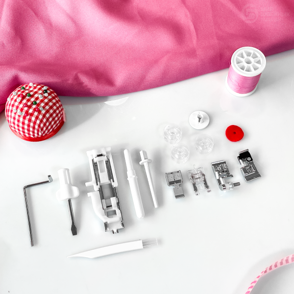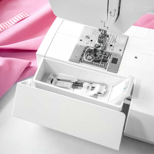 Жёсткий футляр защитит машину от повреждений и пыли. Купить дополнительные иглы, лапки и нитки можно в соответствующем разделе.