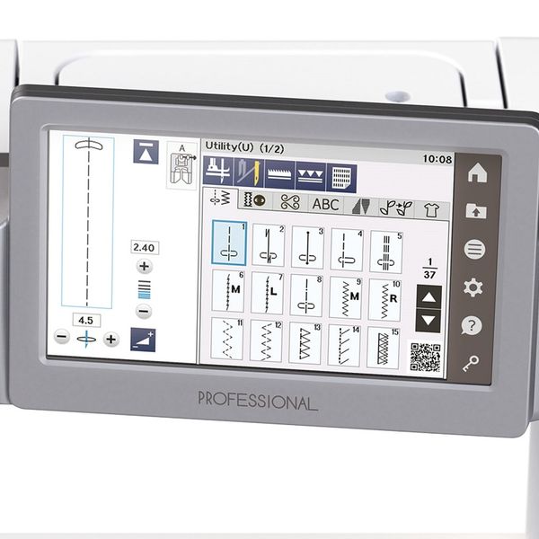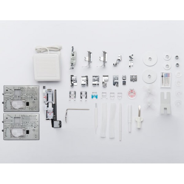Машина имеет функции удлинения стежка, отзеркаливания строчки и переменного зигзага, а также настраиваемое изменение угла среза в начале и конце строчки (tapering). Есть «любимая строчка» и функция начала строчки заново. Натяжение нити и давление лапки подбирается автоматически. В комплект поставки входит ПО для создания строчек Stitch Composer, а также новое приложение AcuSpark, которое генерирует QR код и позволяет получить доступ к широкому ассортименту учебных материалов и видео.