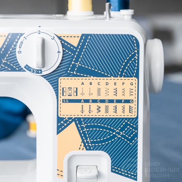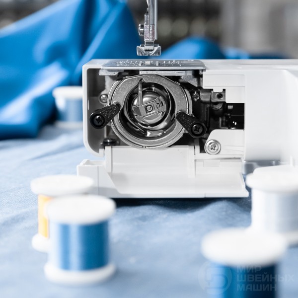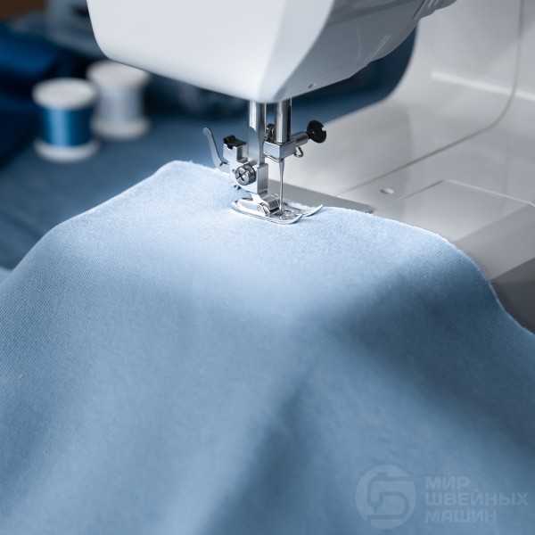 Кроме традиционных рабочих строчек, машина выполняет эластичные и оверлочные швы. Вы сможете шить одежду и текстильные аксессуары из ткани любого типа: мощный мотор помогает прошить даже толстые материалы. Прорезная петля вымётывается в 4 этапа, в полуавтоматическом режиме. Надёжность работы модели заслужила положительные отзывы, так же как возможность использования двойной иглы и простой доступ к рукавной платформе.