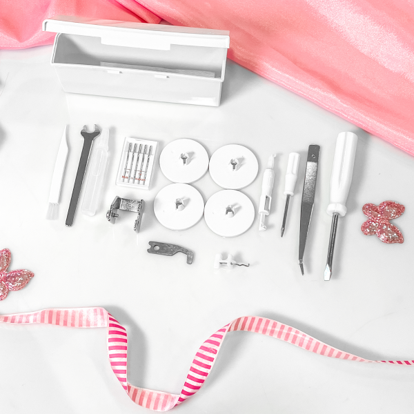 Оверлок поставляется с комплектом основных инструментов. Добавочные улитки, лапки и другие аксессуары можно выбрать и купить отдельно.