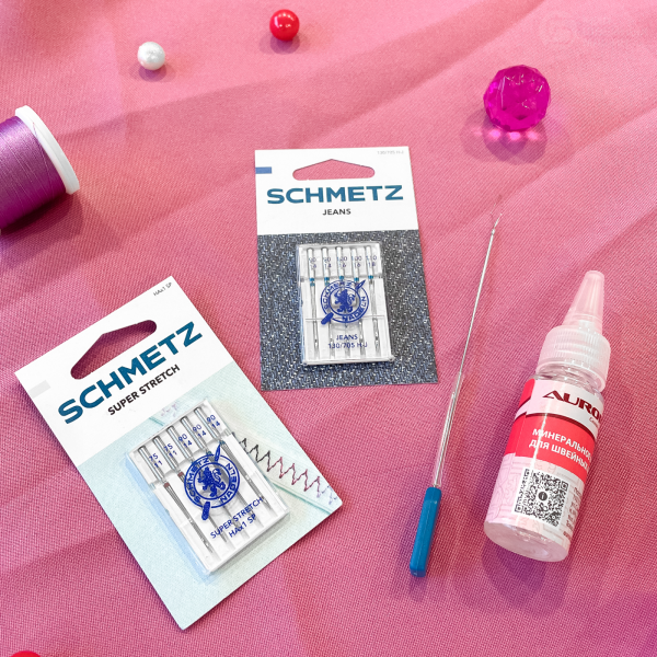 Кроме стандартной комплектации оборудования, в подарок прилагаются наборы игл Schmetz для джинса и супер стрейч, заправщик нитей для оверлока и машинное масло.