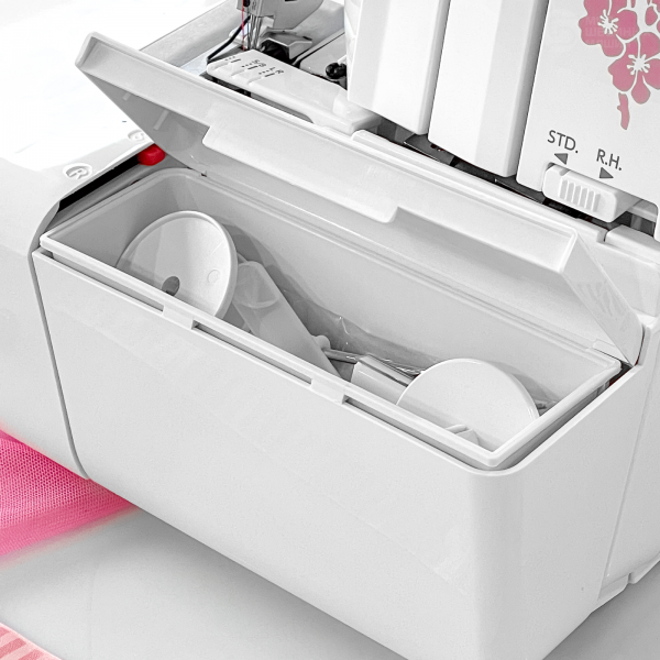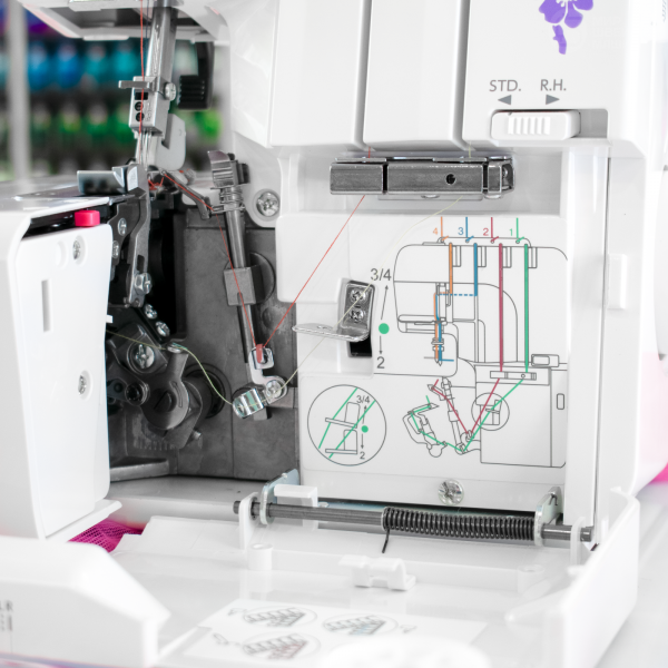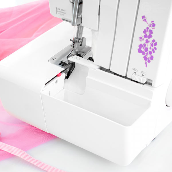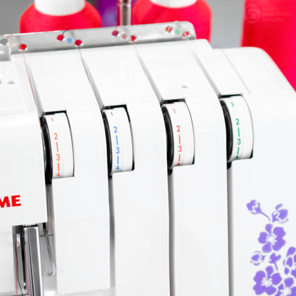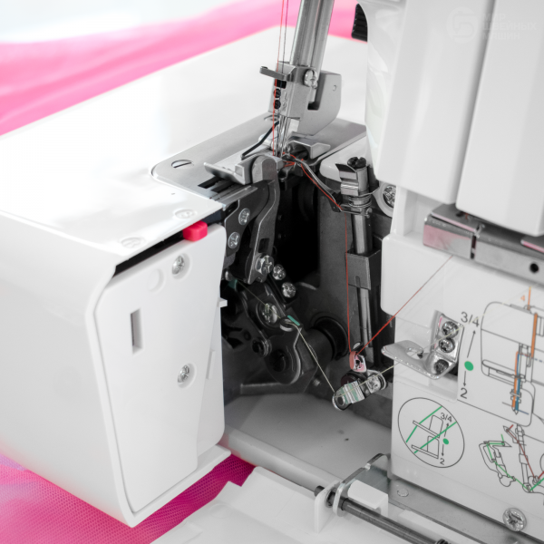 Модель выполняет швы на двух, трёх и четырёх нитях, включая имитации плоского шва Flatlock. Для достижения наилучшего результата на эластичных полотнах есть регулировка дифференциальной подачи, а при работе с тканями разной плотности пригодится настройка давления лапки. Мусоросборник соберёт все обрезки во время шитья. Заправка машины упрощена разметкой. Подсветка выполнена из ярких светодиодов.