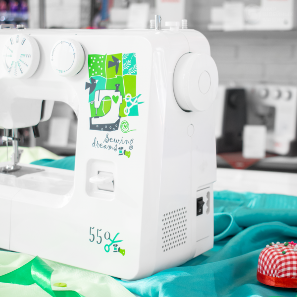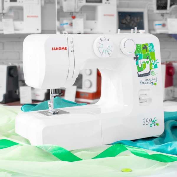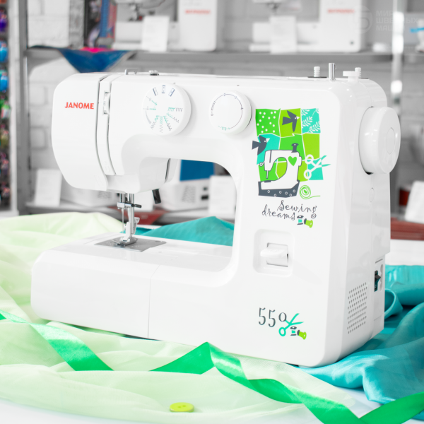 Janome Sewing Dream 550 - классический вариант швейной машины с базовым числом операций и вертикальным челноком. Модель имеет механическое управление и выполняет петлю-полуавтомат.