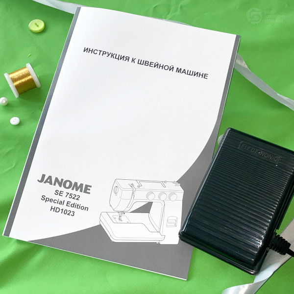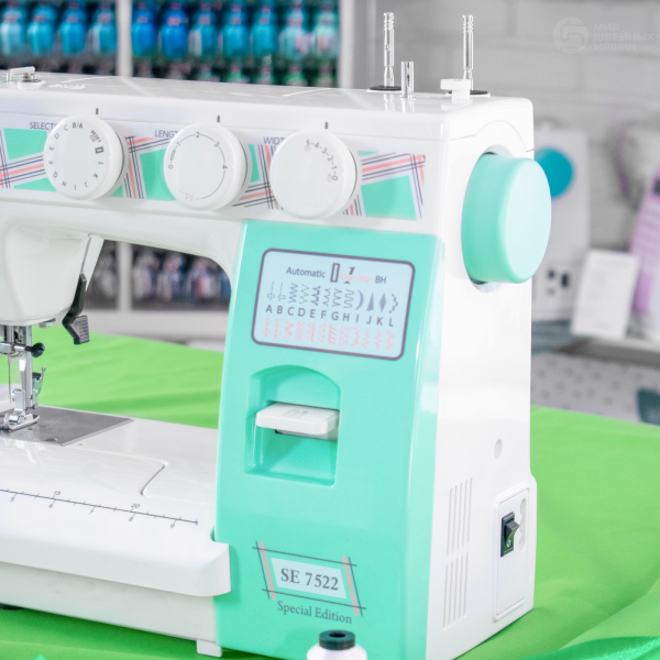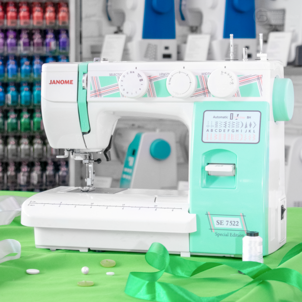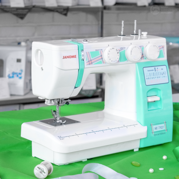 Janome 7522 SE – Хороший выбор электромеханической машины с расширенными возможностями по соответствующей качеству цене. Надёжная машина с вертикальным челноком и корпусом, усиленным металлом.