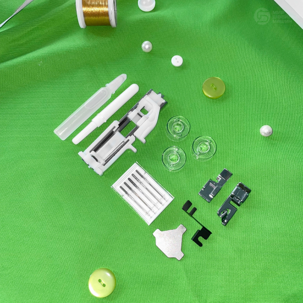Для защиты машины предназначен жёсткий чехол. Кроме базовых игл и лапок, Вы можете купить специальные принадлежности отдельно.