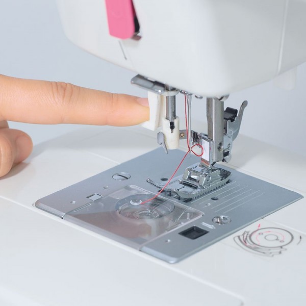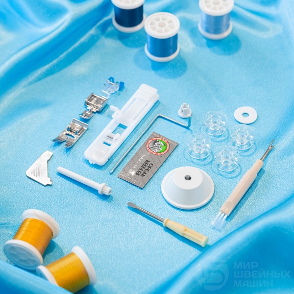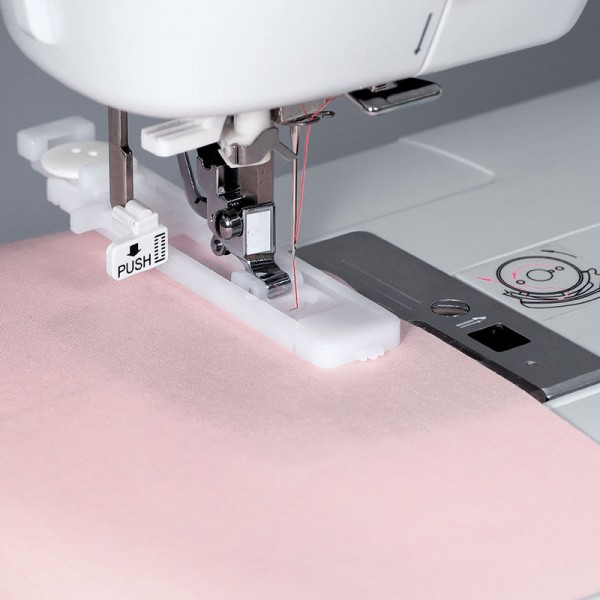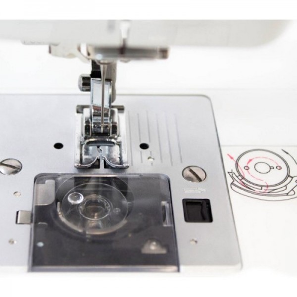 Среди 35 швейных операций Вы без труда подберёте необходимый шов (ширина строчки до 7 мм). Прорезная петля выполняется полностью в автоматическом режиме. В своих отзывах, эксперты и любители отмечают наличие изменения силы давления прижимной лапки и удобный нитевдеватель верхней нити. Экономная светодиодная подсветка обеспечит качественное освещение рабочей поверхности, а рукавная платформа позволит обработать узкие круговые детали. Установите двойную иглу и получите дополнительную отделочную строчку.