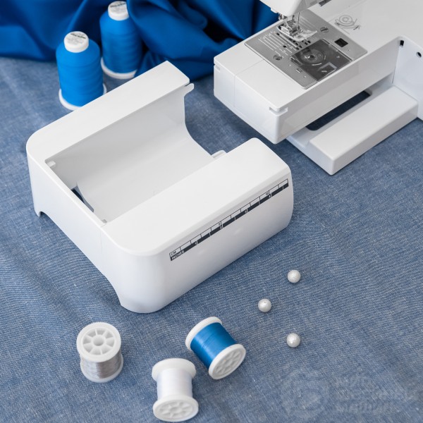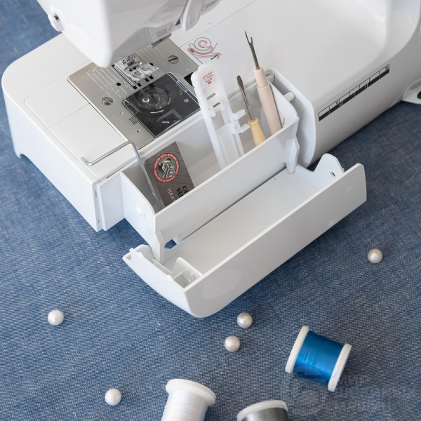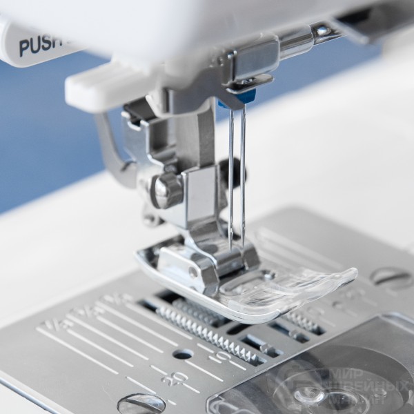 Благодаря сорока операциям, мастер сможет легко подобрать строчку для любой задачи. Предусмотрено три способа оформления прорезной петли. Стоит отдельно отметить возможность регулировки скорости шитья на корпусе машины, а также наличие функций шитья без педали и позиционирования иглы (кнопками). Закрепка может быть выполнена двумя видами стежков. Есть встроенная подсветка и платформа для пошива узких деталей, удобный нитевдеватель.