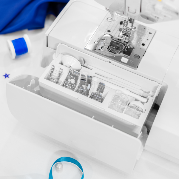 Широкий ассортимент прижимных лапок поставляется с машиной, а купить качественные нитки и иглы можно отдельно.