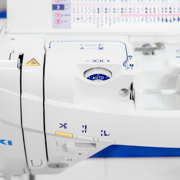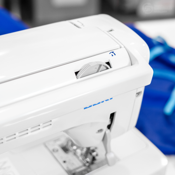Модель демонстрирует высокую скорость шитья (до 1050 ст/мин). Педаль позволяет нажатием обрезать нить и плавно изменить параметры строчки во время шитья. Игольную пластину можно легко трансформировать в прямострочную. Нижний транспортёр промышленного типа в сочетании с настройкой давления лапки и дополнительным верхним транспортёром гарантируют превосходную строчку на разных тканях. Машина комплектуется коленоподъёмником и большим столиком. Набор операций включает 4 шрифта и сенсорные петли-автомат (со специальной лапкой). Двойное светодиодное освещение позволит разглядеть мельчайшие детали.