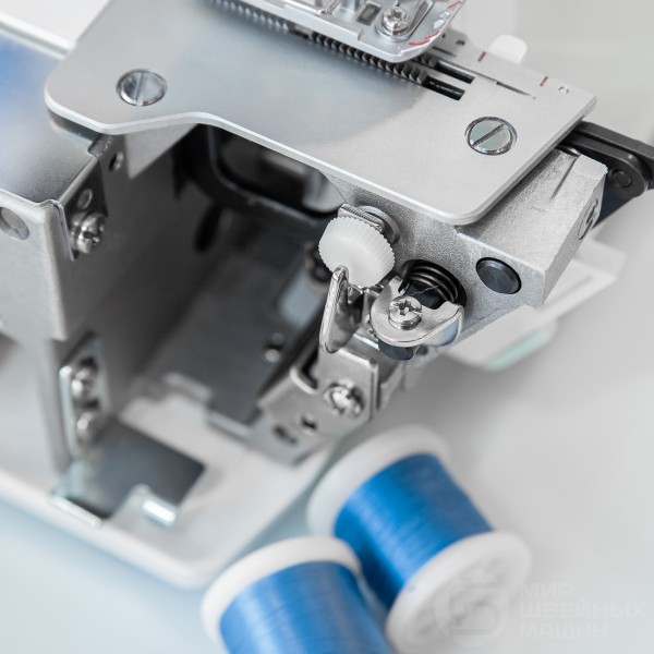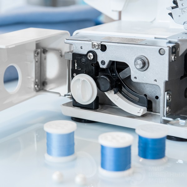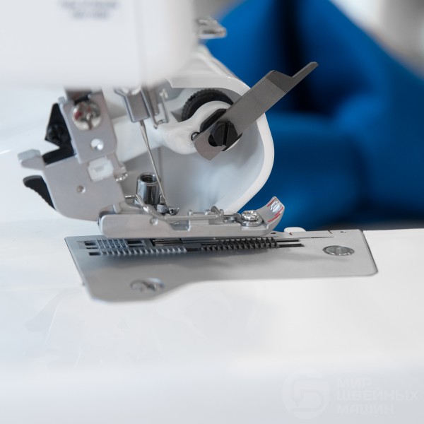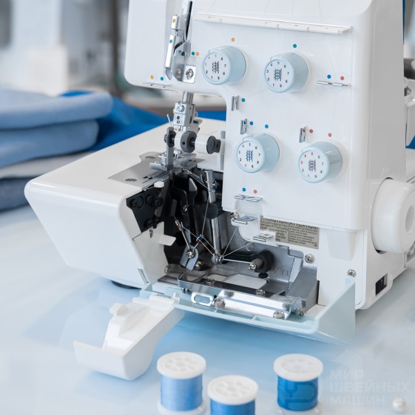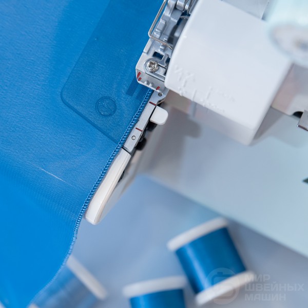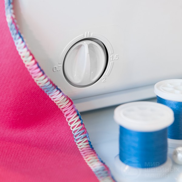 Оверлок выполняет стандартные 3/4х ниточные швы и делает 3х ниточный ролевой шов (закрутку). Есть настройка длины и ширины стежка. По отзывам покупателей, дифференциальная подача помогает получить качественную строчку на эластичных материалах. Вы сможете менять силу давления лапки, работая с тканями разной толщины. Модель имеет встроенную подсветку рабочей области. Максимальная скорость шитья – 1500ст/мин.