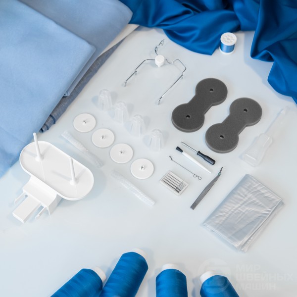 Оверлок поставляется в комплекте с двухниточным конвертером и основными инструментами. Дополнительные аксессуары Вы сможете купить позднее.