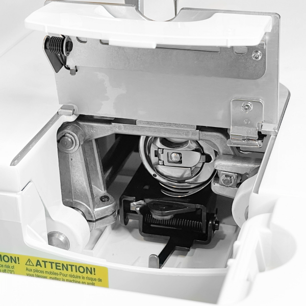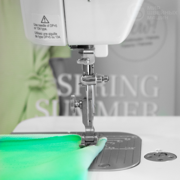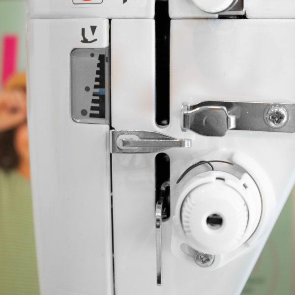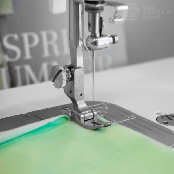 Модель оборудована промышленными иглами и надежным вертикальным челноком. Конструкция позволяет установить машину на промышленный стол или использовать прилагающийся расширительный пластиковый столик. Кроме тканей разной плотности, эта модель отлично справится с кожей (предусмотрен специальный блок для натяжения нити при такой операции). Качественному шитью способствует и микролифт лапки (2 мм) и настройка давления лапки. Машина имеет функцию автообрезки нитей и позиционирования иглы. Для стежки можно быстро опустить зубцы нижнего транспортера. Конструкция включает сменное приспособление для доп.принадлежностей (возле игольной пластины).