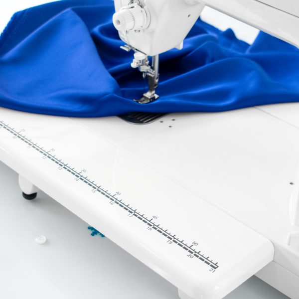 Машина также подходит для простёгивания габаритных изделий (лоскутных одеял, покрывал, панно). Педаль машины имеет функцию обрезки нитей, которую также можно сделать и с корпуса. Регулятор давления лапки повысит качество стежка на разных тканях. Механизм контроля скорости позволяет аккуратно шить плотные ткани, а общая скорость шитья может достигать 1500 ст/мин. Обладая большим рабочим местом, машина позволяет добавить приставной столик (в комплекте). Отзывы владельцев отмечают наличие нитевдевателя и точную настройку натяжения нити. Светодиодная подсветка поможет лучше контролировать работу. В комплекте прилагаются два типа лапок для свободной стёжки.