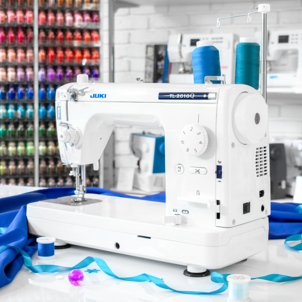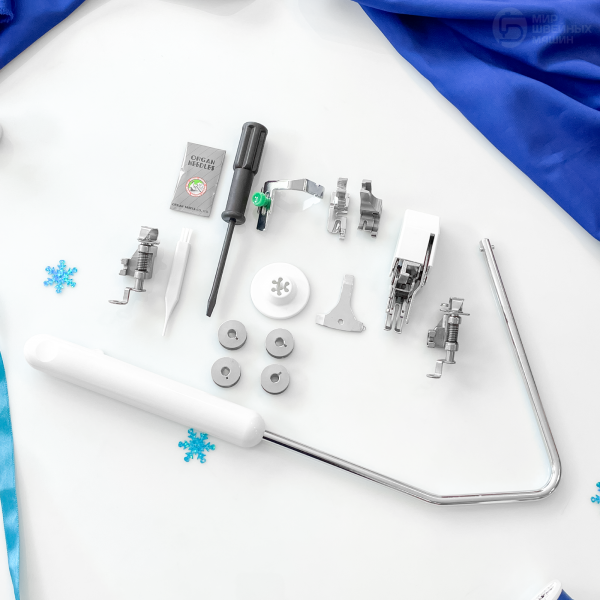 С машиной поставляется мягкий чехол, коленоподъёмник и необходимые лапки. Рекомендуем купить качественные нитки для квилтинга и шитья.