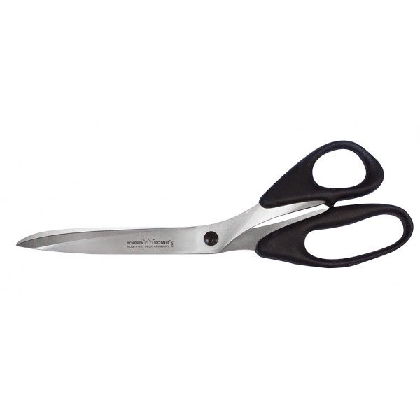 Прочные ножницы для шитья с острыми лезвиями, по которым сделана лазерная заточка. Качественный материал гарантирует долгий срок службы.