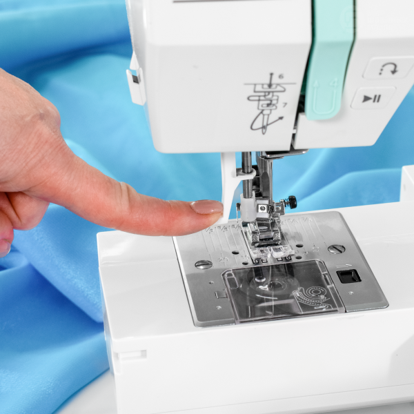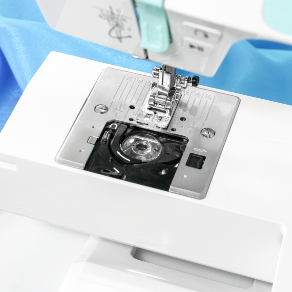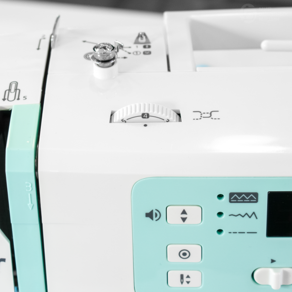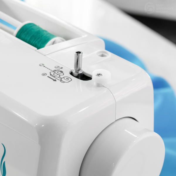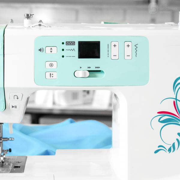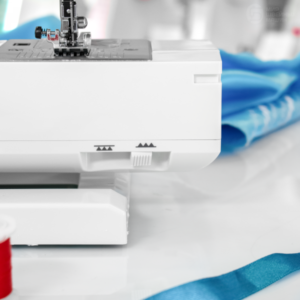 Машина использует в работе простой горизонтальный челнок и нитевдеватель, что позволит быстро подготовить оборудование к работе. В памяти записано 7 видов обработки петель, есть строчки для декоративной отделки и оверлочные стежки. Те, кто занимается квилтингом оценят быстрое переключение нижнего транспортера в режим стежки. На корпусе расположена кнопка выбора шитья без педали, регулятор скорости строчки и позиционер иглы. Автозакрепка поможет надежно зафиксировать строчку.